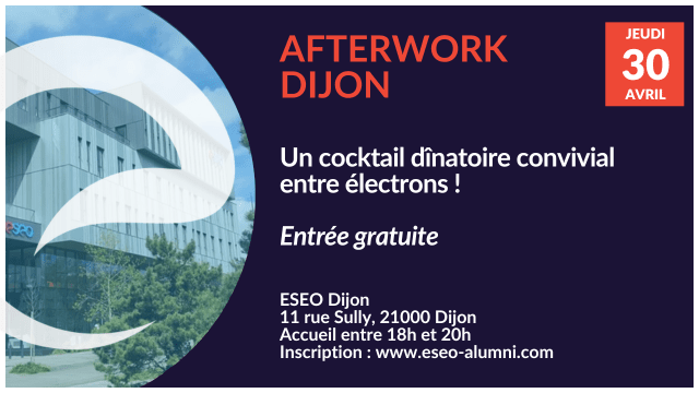 Rendez-vous le jeudi 30 avril à partir de 18h sur le campus de Dijon pour un afterwork convivial entre électrons !