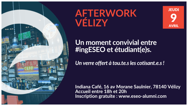 Rendez-vous le 9 avril 2026 à 18h à l'Indiana Café, à quelques minutes à pieds du campus de l'ESEO, après le Forum Entreprises qui s'y tiendra tout l'après-midi.
